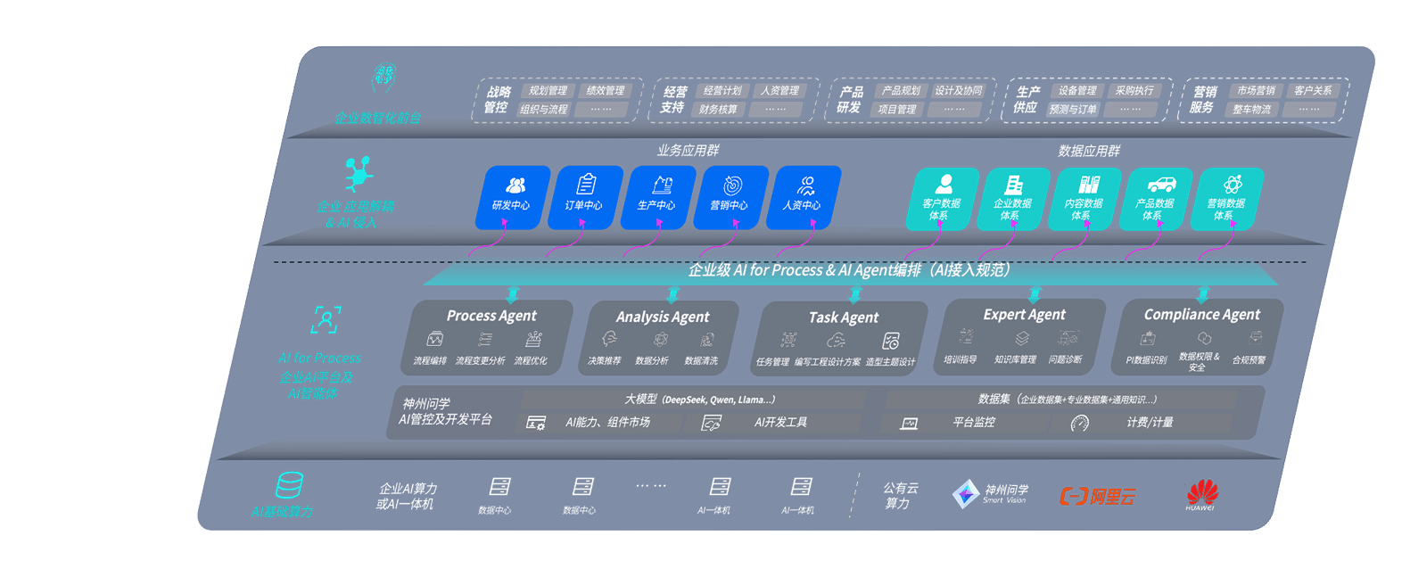 端到端的一站式AI工作空间深度融合了从企业战略规划到日常经营的全流程业务板块,,,,定向解决车企内部领域多、、、、部门多、、、、链条长、、场景碎片化等难题,,,支持车企快速构建以AI为核心的生产力写作体系,,,,实现任务执行与AI能力的无缝集成与交互